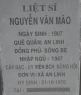Tìm thân nhân nhân liệt sĩ Nguyễn Văn Mão