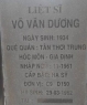Tìm thân nhân liệt sĩ Võ Văn Dương