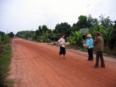 Từ cầu Sài Gòn cách điểm đến là ấp Trảng Trai, xã Tân hòa gần 20 ki-lô-mét. Biết đường còn xa, lại vắng vẻ nên nhân tiện có đôi vợ chồng trẻ cũng dừng xe trên cầu, có lẽ anh chị đi làm về. Tôi liền hỏi: