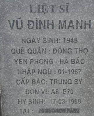 Tiêu đề : Tìm thân nhân liệt sĩ Vũ Đình Mạnh