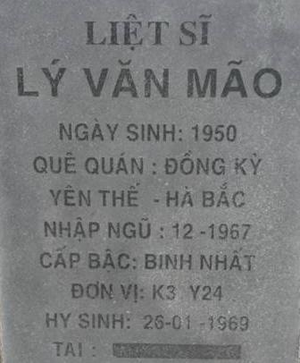 Tiêu đề : Tìm thân nhân liệt sĩ Lý Văn Mão