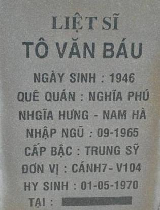 Tiêu đề : Tìm thân nhân liệt sĩ Tô Văn Báu