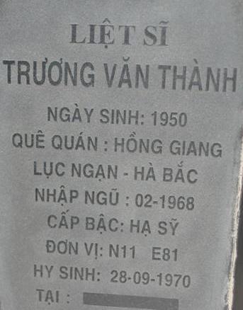 Tiêu đề : Tìm thân nhân liệt sĩ Trương Văn Thành