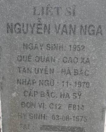 Tiêu đề : Tìm thân nhân liệt sĩ Nguyễn Văn Nga