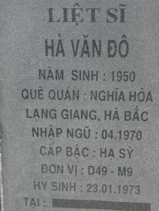 Tiêu đề : Tìm thân nhân liệt sĩ Hà Văn Đô
