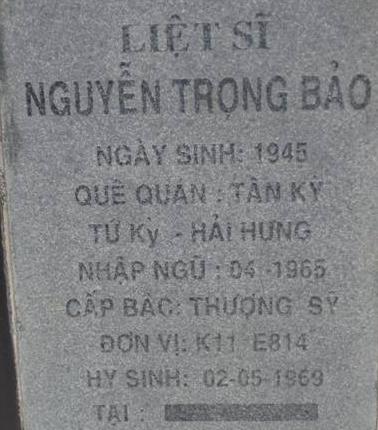 Tiêu đề : Tìm thân nhân liệt sĩ Nguyễn Trọng Bảo