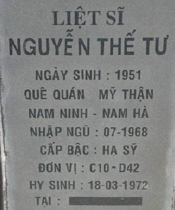 Tiêu đề : Tìm thân nhân liệt sĩ Nguyễn Thế Tư