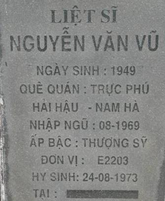 Tiêu đề : Tìm thân nhân liệt sĩ Nguyễn Văn Vũ