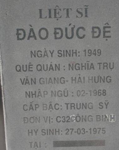 Tiêu đề : Tìm thân nhân liệt sĩ Đào Đức Đệ
