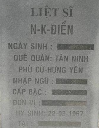 Tiêu đề : Tìm thân nhân liệt sĩ N-K- Điền