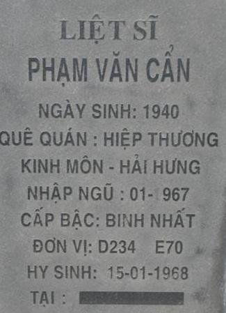 Tiêu đề : Tìm thân nhân liệt sĩ Phạm Văn Cẩn