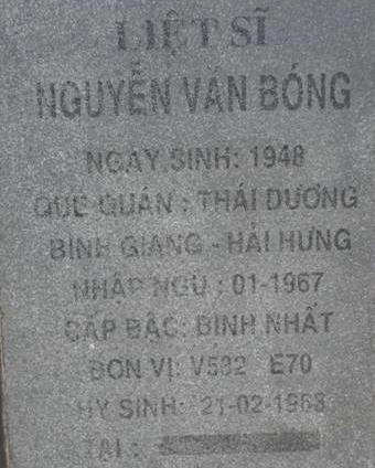 Tiêu đề : Tìm thân nhân liệt sĩ Nguyễn Văn Bóng