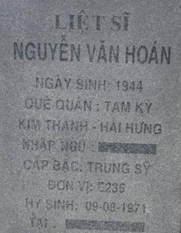 Tiêu đề : Tìm thân nhân liệt sĩ Nguyễn Văn Hoán