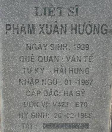 Tiêu đề : Tìm thân nhân liệt sĩ Phạm Xuân Hướng