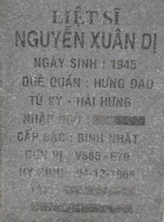 Tiêu đề : Tìm thân nhân liệt sĩ Nguyễn Xuân Dị