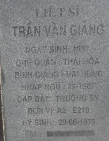 Tiêu đề : Tìm thân nhân liệt sĩ Trần Văn Giảng