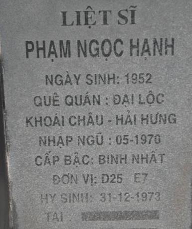 Tiêu đề : Tìm thân nhân liệt sĩ Phạm Ngọc Hạnh