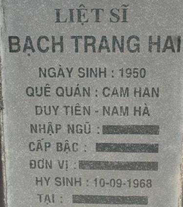 Tiêu đề : Tìm thân nhân liệt sĩ Bạch Trang Hai
