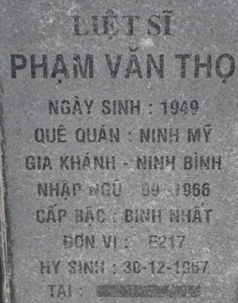 Tiêu đề : Tìm thân nhân liệt sĩ Phạm Văn Thọ