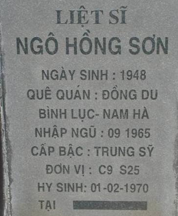 Tiêu đề : Tìm thân nhân liệt sĩ Ngô Hồng Sơn