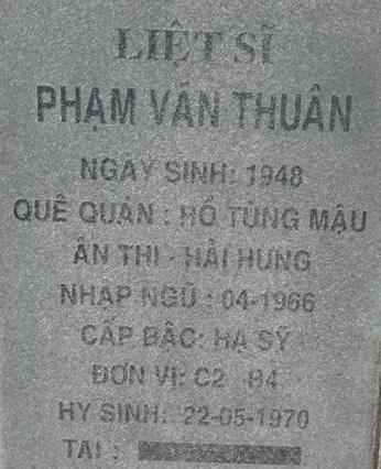 Tiêu đề : Tìm thân nhân liệt sĩ Phạm Văn Thuân