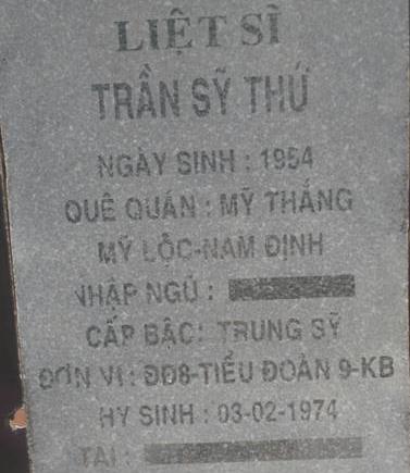 Ngày hi sinh : 1974 - 03/02/1974