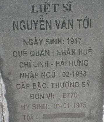 Tiêu đề : Tìm thân nhân liệt sĩ Nguyễn Văn Tới