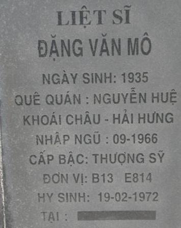 Tiêu đề : Tìm thân nhân liệt sĩ Đặng Văn Mô