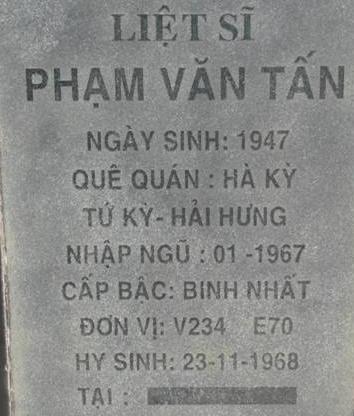 Tiêu đề : Tìm thân nhân liệt sĩ Phạm Văn Tấn