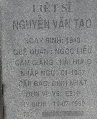 Tiêu đề : Tìm thân nhân liệt sĩ Nguyễn Văn Tạo