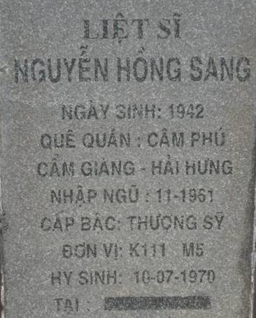 Tiêu đề : Tìm thân nhân liệt sĩ Nguyễn Hồng Sang