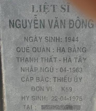 Tiêu đề : Tìm thân nhân liệt sĩ Nguyễn Văn Đông