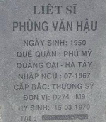 Tiêu đề : Tìm thân nhân liệt sĩ Phùng Văn Hậu