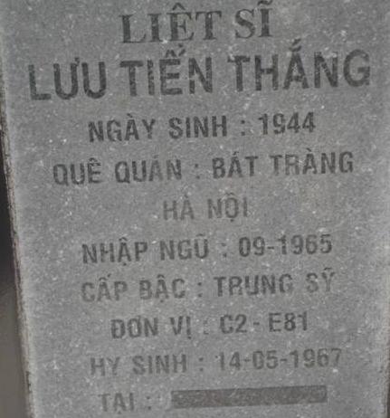 Tiêu đề : Tìm thân nhân liệt sĩ Lưu Tiến Thắng