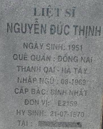 Tiêu đề : Tìm thân nhân liệt sĩ Nguyễn Đức Thịnh