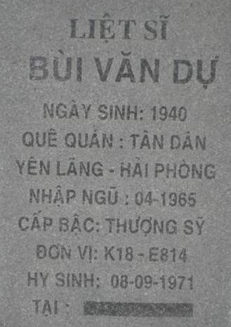 Tiêu đề : Tìm thân nhân liệt sĩ Bùi Văn Dự