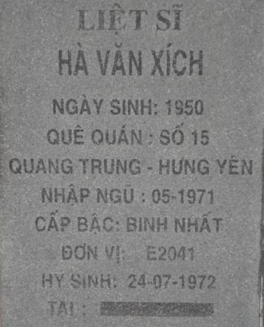 Tiêu đề : Tìm thân nhân liệt sĩ Hà Văn Xích