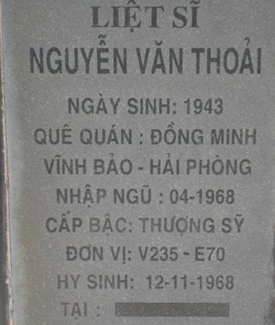 Tiêu đề : Tìm thân nhân liệt sĩ Nguyễn Văn Thoải