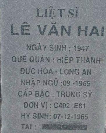 Tiêu đề : Tìm thân nhân liệt sĩ Lê Văn Hai