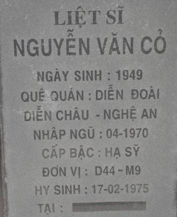 Tiêu đề : Tìm thân nhân liệt sĩ Nguyễn Văn Cỏ