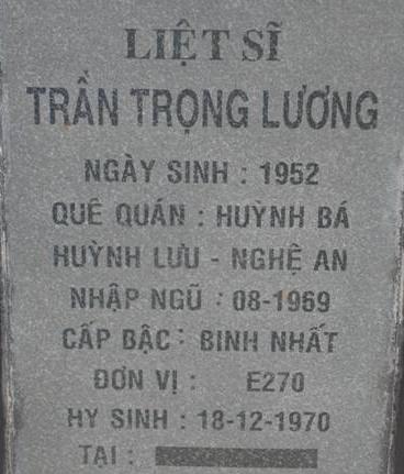 Tiêu đề : Tìm thân nhân liệt sĩ Trần Trọng Lương