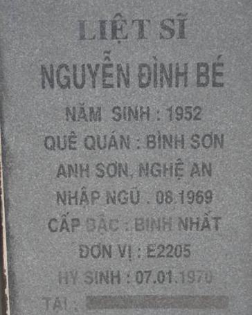 Tiêu đề : Tìm thân nhân liệt sĩ Nguyễn Đình Bé