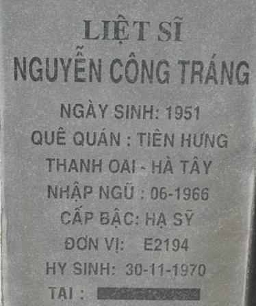 Tiêu đề : Tìm thân nhân liệt sĩ Nguyễn Công Tráng
