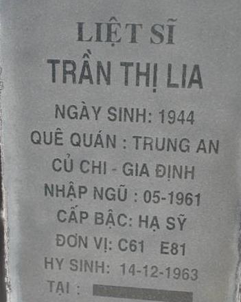 Tiêu đề : Tìm thân nhân liệt sĩ Trần Thị Lia