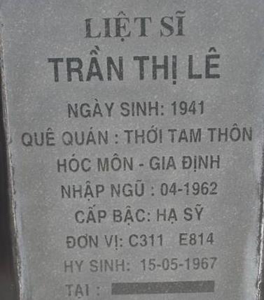 Tiêu đề : Tìm thân nhân liệt sĩ Trần Thị Lê