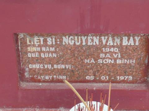 Nguyên quán trên bia mộ: Ba Vì, Hà Sơn Bình. Để tìm hiểu thêm thông tin mộ liệt sĩ , vui lòng liên hệ: