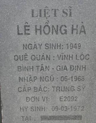 Tiêu đề : Tìm thân nhân liệt sĩ Lê Hồng Hà