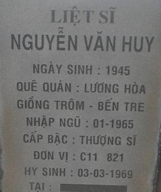 Tiêu đề : Tìm thân nhân liệt sĩ Nguyễn Văn Huy