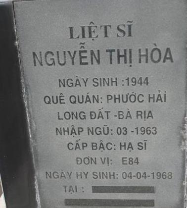 Tiêu đề : Tìm thân nhân liệt sĩ Nguyễn Thị Hòa