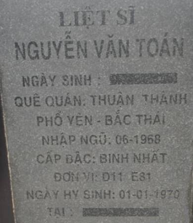 Tiêu đề : Tìm thân nhân liệt sĩ Nguyễn Văn Toán